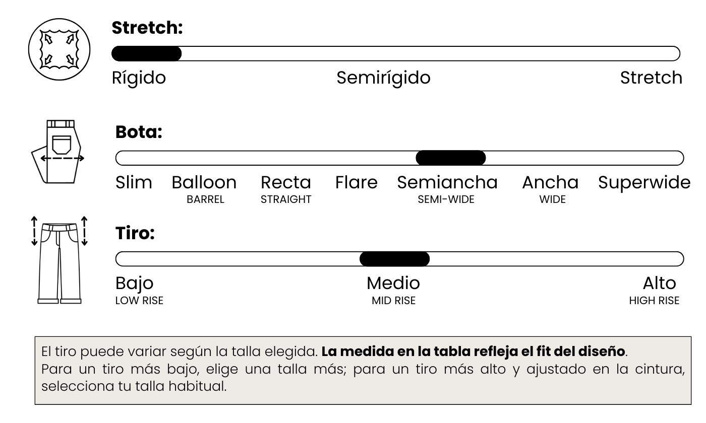 - Corte Straight Fit: Silueta recta moderna que estiliza y favorece todo tipo de cuerpo