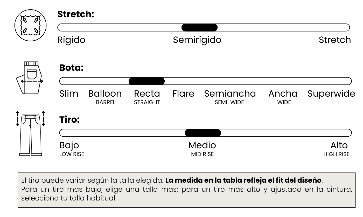 - Fit straight: corte recto clásico que favorece todas las siluetas