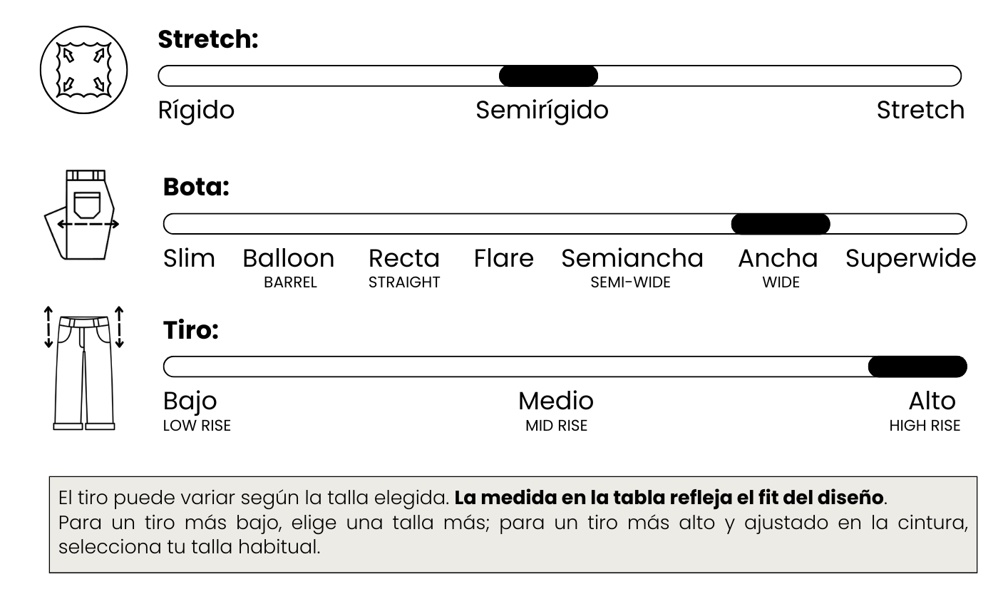 - Corte Wide Leg: Silueta amplia y fluida que estiliza y alarga la figura